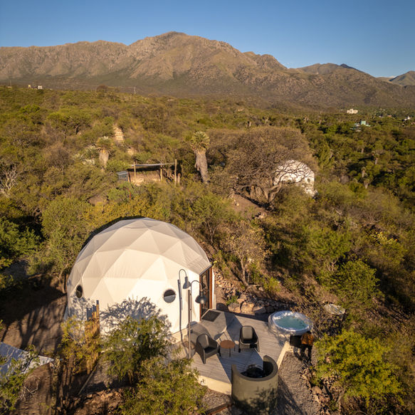Cabañas cálidas entre árboles, piscinas, naturaleza y la presencia del Cerro Uritorco